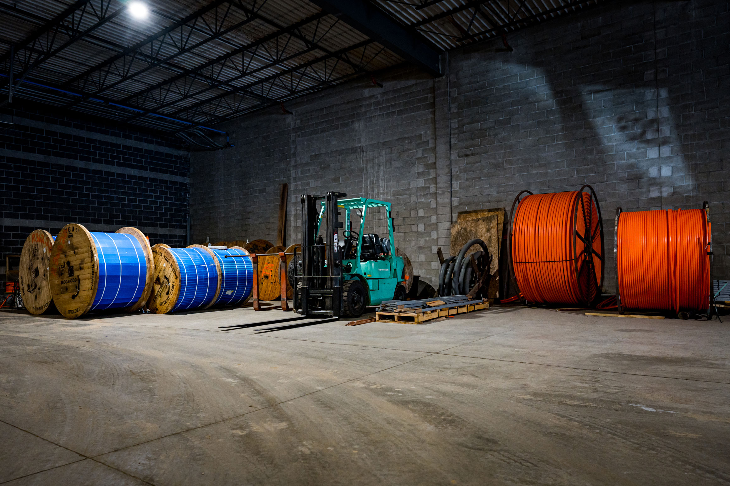 A warehouse in Le Sueur county where Bevcomm stores fiber.